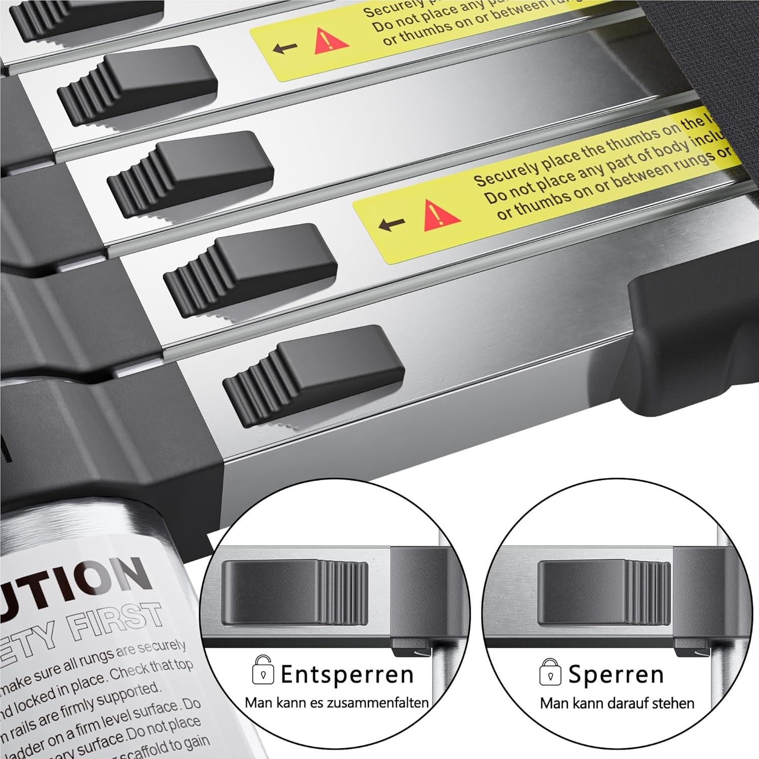 Beide Leiterfüße sind mit rutschfesten Fußkappen ausgestattet, die nicht nur die Stabilität erhöhen, sondern auch den Boden vor Kratzern schützen und für verschiedene Bodenbeläge geeignet sind.